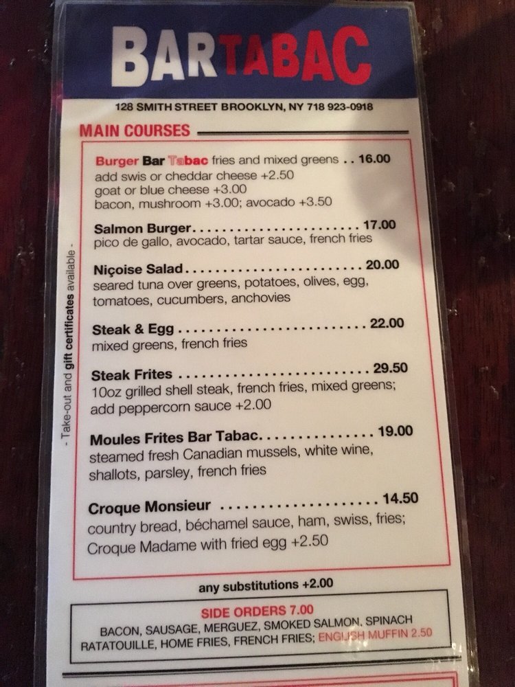 Bar Tabac is a charming French-inspired bistro located in the heart of Brooklyn that excels in providing an inviting atmosphere for breakfast, brunch, lunch, and dinner. Their menu boasts a delightful selection of dishes that celebrate French cuisine while catering to diverse dietary preferences, including vegan and vegetarian options.